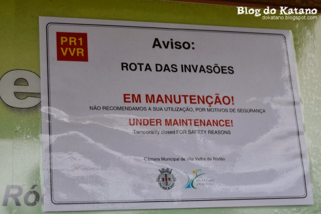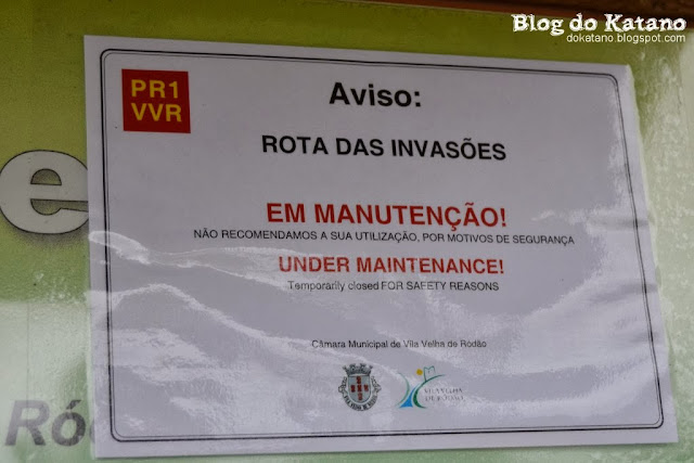 O trilho terminou pouco depois da Bateria da Achada, onde deveríamos ter iniciado o mesmo. Foi só então, no painel de informação que supostamente marca o início trilho, que nos deparámos com este aviso: