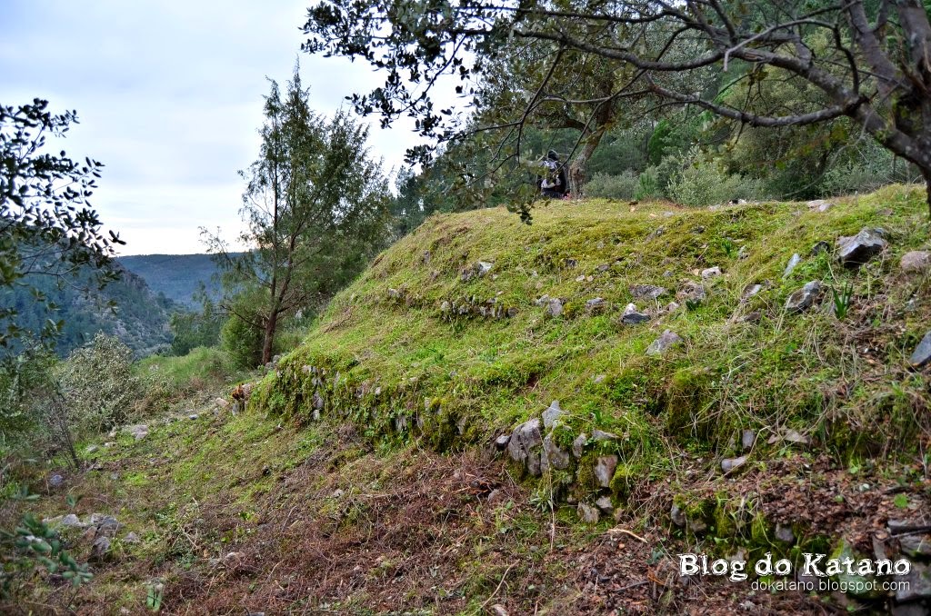 Feitas as apresentações, assim como as despedidas, fiquei a sós com o meu cicerone que se mostrou extremamente satisfeito pelo meu interesse no seu tesouro histórico. Convidou-me a acompanhá-lo até às marcas, por um percurso que se fez por um terreno relativamente plano mas predominantemente rochoso, com algumas árvores, onde as esporádicas bolsas de terra eram aproveitadas para cultivo.