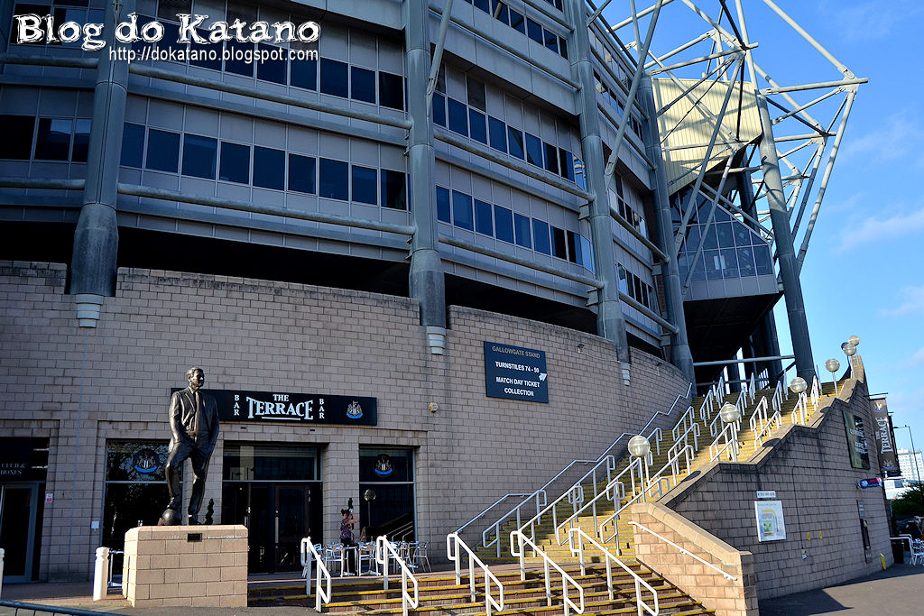 O estádio do Newcastle junto ao qual se encontra, entre outras, a estátua de Bobby Robson.
