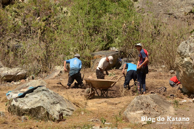 Ali perto, um grupo de homens trabalhava afincadamente na produção de tijolos de adobe, amassando a terra e a palha com os pés, moldando os tijolos e pondo-os a secar ao Sol.