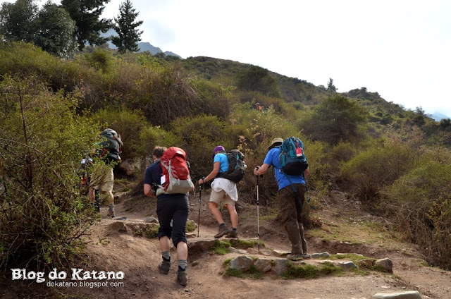 Ao sinal dos nossos guias, e após a distribuição de água (fervida, claro) para encher os cantis, pusemos novamente as mochilas às costas e retomámos a caminhada, enquanto os carregadores ficavam para trás a desmontar o acampamento. Depressa pudemos experimentar uma subida íngreme, uma amostra daquilo que iríamos encontrar durante o resto do dia. Quem não pareceu muito incomodado foram os carregadores que, a dada altura e apesar de transportarem aquela carga toda às costas, nos ultrapassaram com facilidade.