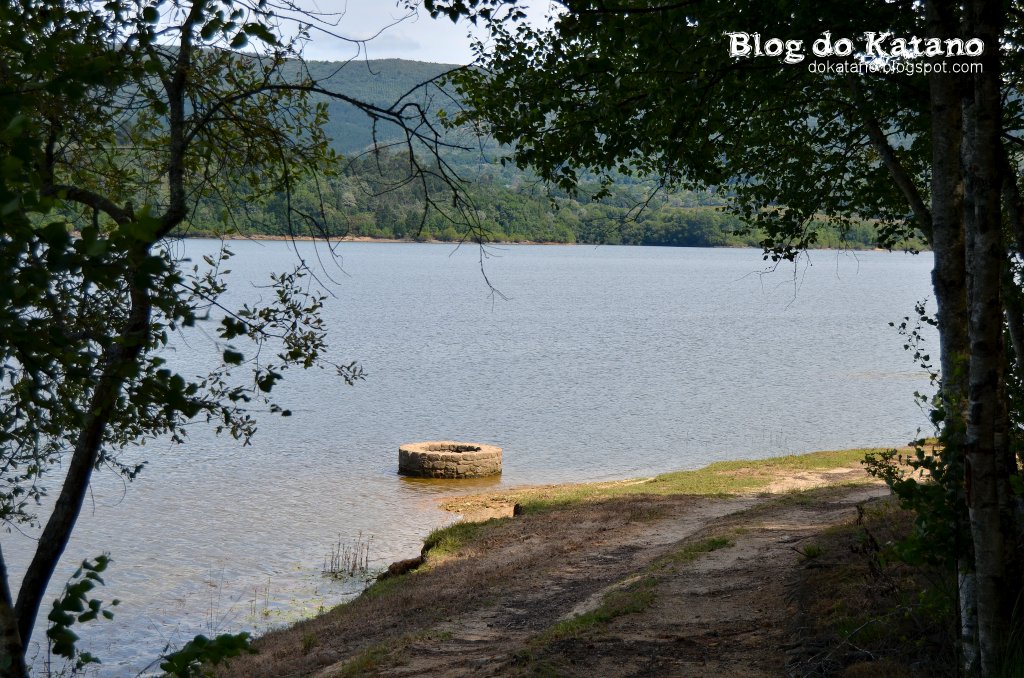 Não podendo seguir o caminho devido à água, entrámos num pequeno trilho florestal para chegar ao local onde se encontram os vestígios das termas. Com as ruínas submersas, valeu pela beleza e tranquilidade daquele recanto. Apesar de já terem passado quase dois milénios, ainda é possível banharmos-nos nas águas termais tal como os romanos faziam, embora apenas quando o nível da água da barragem o permite, o que não era o caso. Ainda assim, no local pudemos ver uma fonte de água quente sulfurosa que brota a cerca de 50 graus e que é canalizada para os antigos tanques. [Clicar aqui para ver imagens destes tanques]