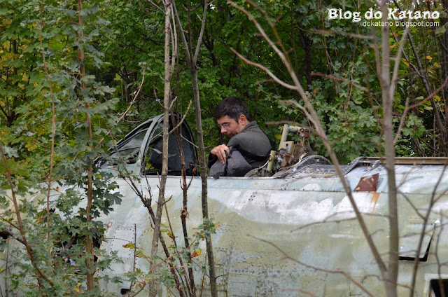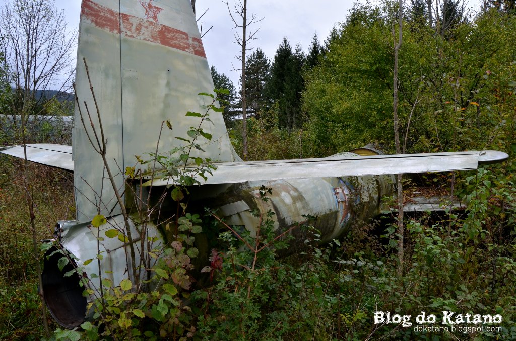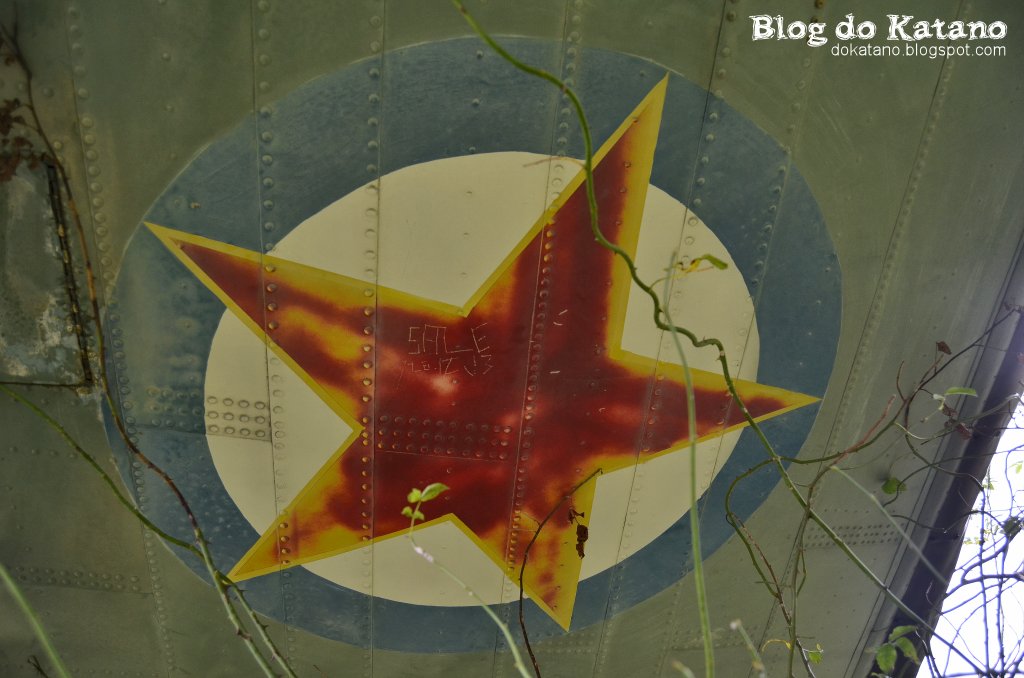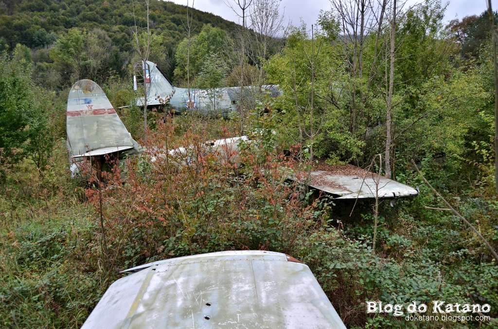 Parámos o carro à entrada da base e começámos a nossa exploração a pé. Em frente ao antigo portão, destacava-se da vegetação a carcaça de um antigo avião de transporte de pessoal, um Dakota C47. Passando por baixo deste, descobrimos que havia mais dois aviões semi-dissimulados pela floresta que tentava retomar o seu espaço. Tratava-se de dois aviões que depois ficámos a saber serem de fabrico americano. Eram dois Thunderjet F-84G, aviões mono-jacto que se tornaram muito populares após a 2ª Guerra Mundial, sendo até amplamente usados por Portugal na Guerra do Ultramar. A força aérea jugoslava teve mais de 230 destes aparelhos até 1974, altura em que foram retirados de serviço.
