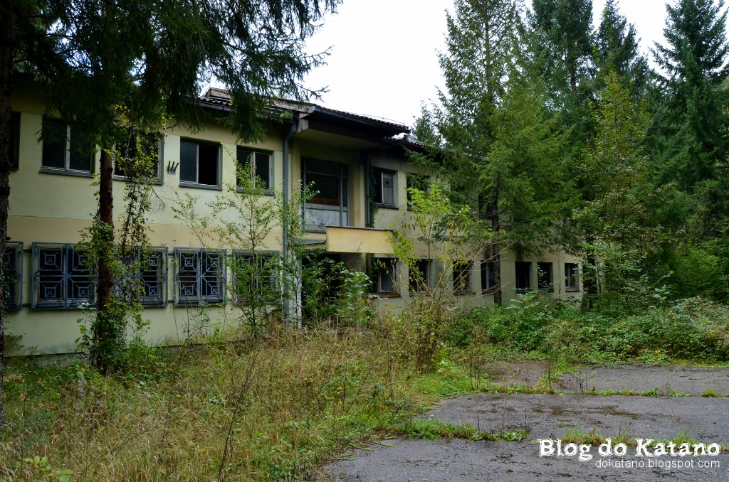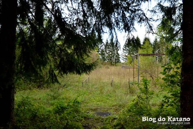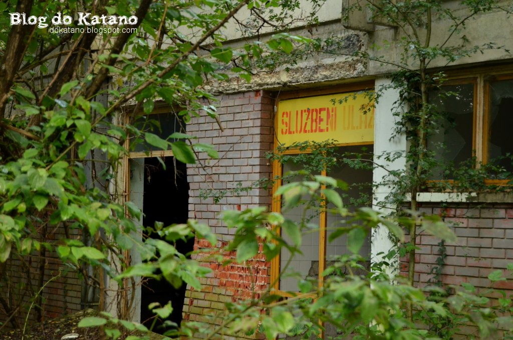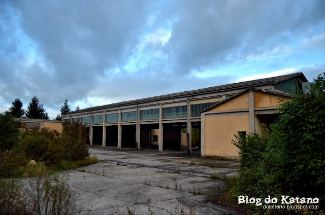 Depois de perdermos algum tempo com os aviões, passámos o portão e entrámos na zona dos edifícios de superfície da base: casernas, oficinas, campos de treino, etc. O cenário era desolador e não se via nem ouvia nada a não ser o vento nas árvores e um ou outro pássaro. Fomos percorrendo as antigas ruas entre os edifícios, entrando em alguns para tentar perceber a que se destinavam, já que os poucos letreiros de pouca utilidade eram, já que o nosso croata estava algo enferrujado.