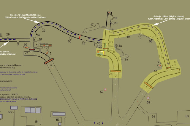 Na base estavam estacionadas duas esquadrilhas de ataque e uma de reconhecimento e diz-se que os túneis poderiam albergar cerca de 100 aviões de combate, todos eles os temíveis Mig-21, o que não é de todo improvável embora, por razões funcionáveis, fossem certamente menos. A base dispunha, como já referi, de 4 saídas capazes de lançar caças para as 5 pistas exteriores, o que lhe conferia uma capacidade de resposta tremenda. O controlo do movimento dos aviões era feito a partir de uma torre de controlo mais semelhante a um bunker, na encosta da montanha, acessível por elevador a partir do interior da base.