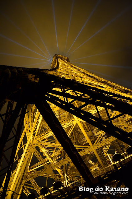 A Torre Eiffel, encimada pela luz radiada dos seus holofotes
