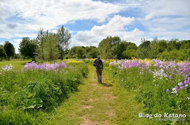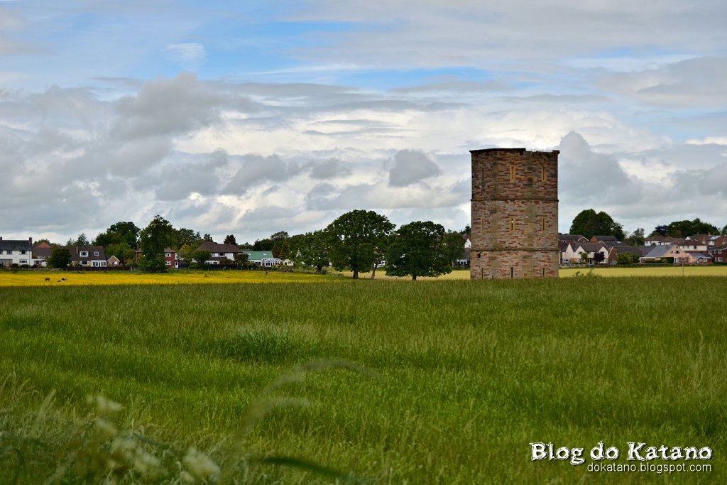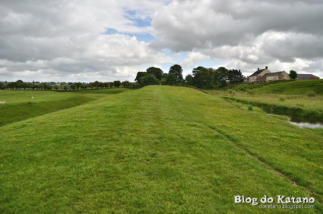 Continuando o nosso caminho, chegámos a Crosby-on-Eden, povoação situada junto à estrada que hoje substitui a antiga "Stanegate" (recordar aqui). A chegada a esta aldeia coincide com a chegada ao rio Eden, cujo curso serviu de orientação para a construção do extremo Oeste da Muralha e que seria também o curso que seguiríamos até ao final do Trilho no dia seguinte. Ao sairmos da povoação recomeçou a chuva mas, felizmente, foi de pouca dura. Quanto ao percurso, durante cerca de uma hora foi pouco interessante, fazendo-se primeiro por caminhos de terra batida junto a quintas, sendo que uma delas foi um verdadeiro desafio de resistência para o nosso olfacto e para a nossa agilidade de pés na prática do "Evitar-o-líquido-escuro-mal-cheiroso-que-cobre-o-caminho".