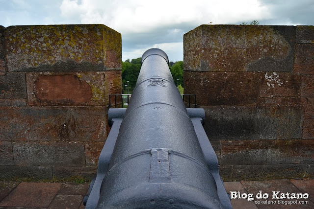 Um dos canhões do castelo, por coincidência apontado para a Escócia.