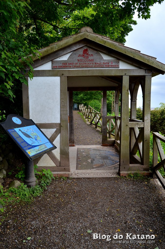 Mal entrámos em Bowness, a sinalética indicando o fim do Trilho gerou um certo nervoso miudinho. Uma curva à direita, para um caminho estreito entre o casario, depois uma curva à esquerda, e ali estava finalmente o pequeno abrigo de madeira, à vista do Mar da Irlanda, com o emblemático letreiro de boas-vindas em latim!