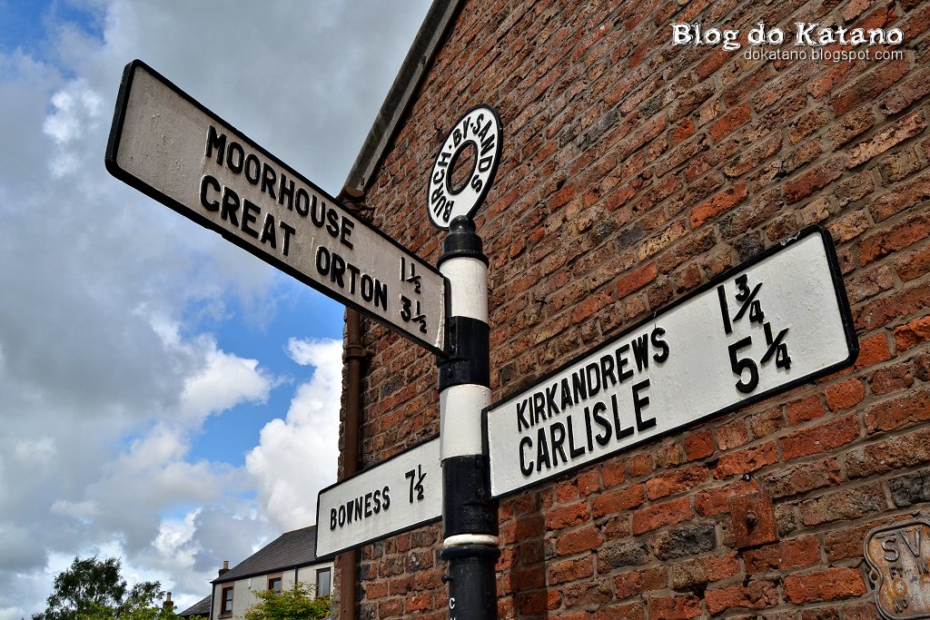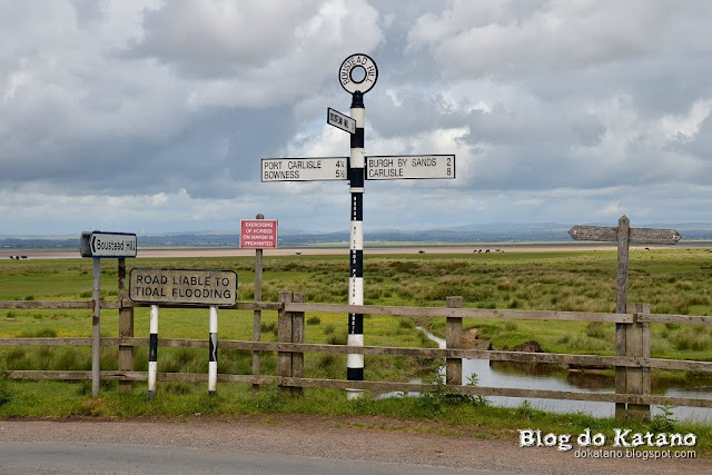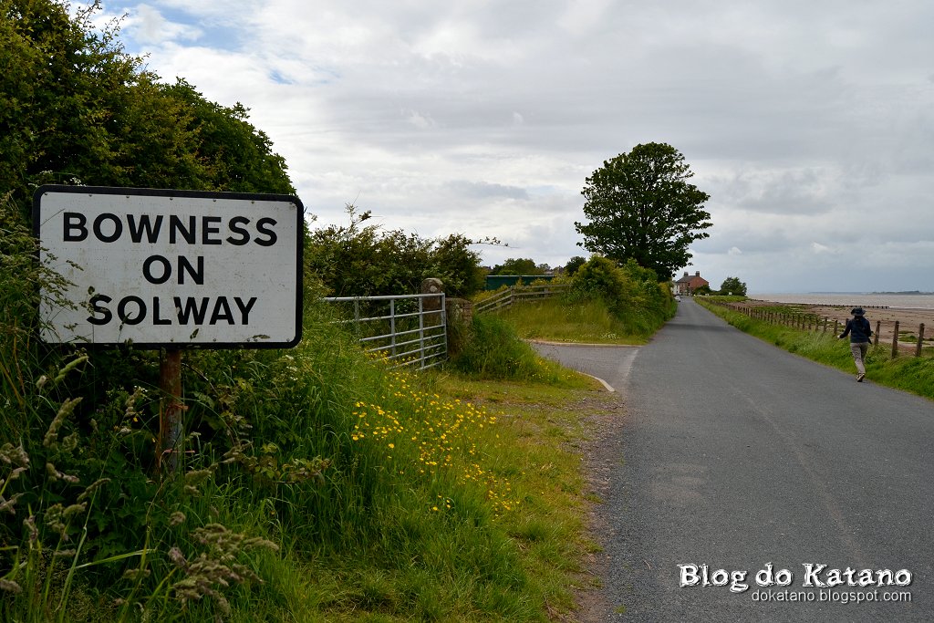 2km depois de Port Carlisle, avistámos finalmente a aldeia de Bowness-on-Solway, povoação onde o trilho chega ao fim (ou começa, para quem o fizer no sentido Oeste-Este). Quase poderíamos jurar que a placa toponímica à entrada da localidade tem excelentes propriedades analgésicas, isto porque bastou a simples visão da mesma para subitamente fazer desaparecer as dores musculares e de tendinites que tínhamos coleccionado pelo caminho.