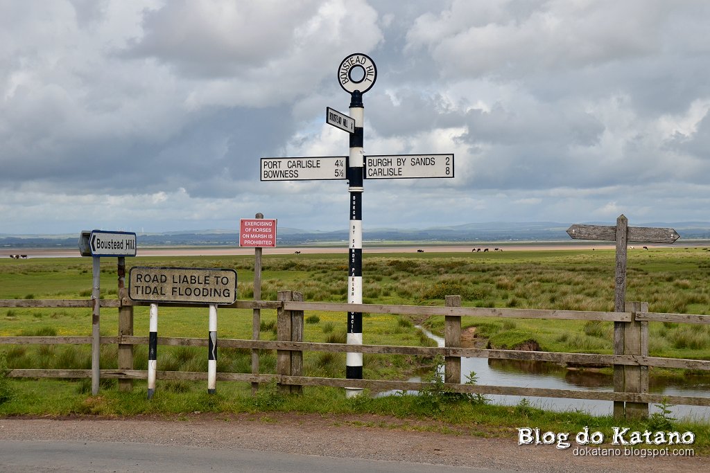 Praticamente a partir de Burgh by Sands, começa uma enorme recta com cerca de 5km, que atravessa uma zona pantanosa do estuário do rio Eden. Em Longburgh existe um aviso com horários de marés para que os caminheiros possam estar informados das alturas do dia em que a estrada fica submersa devido à subida das águas do estuário.