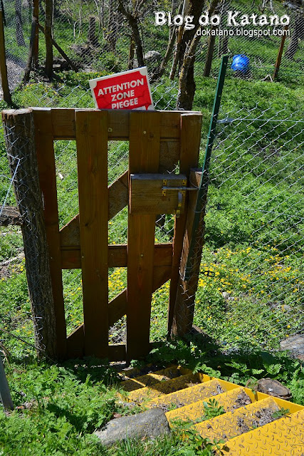 A aldeia de Goulier é relativamente grande, certamente tirando dividendos da proximidade das pistas de esqui. Um idoso que se encontrava sentado, também ele aproveitando o Sol, tranquilizou-nos em relação à segurança da água da fonte que dominava a praceta. Despedimo-nos e seguimos pela rua principal, para começar a descida de regresso a Vicdessos. Aparentemente, nem tudo é pacífico em Goulier, como o prova este aviso na entrada de um pequeno quintal zelosamente cercado: "Atenção, zona armadilhada!".