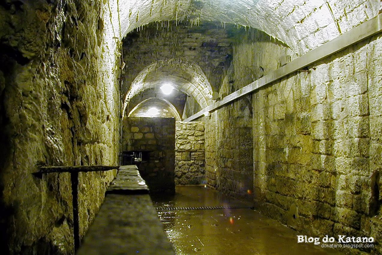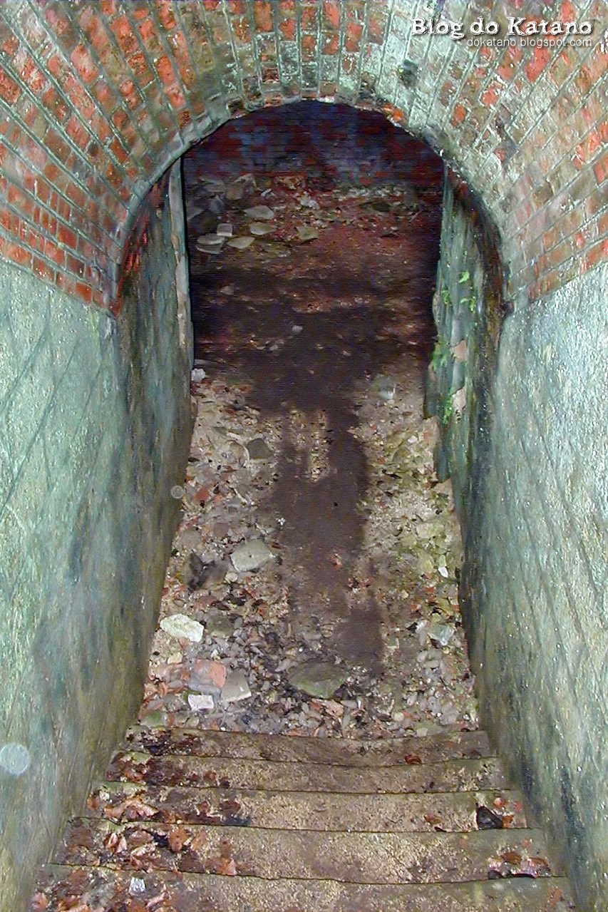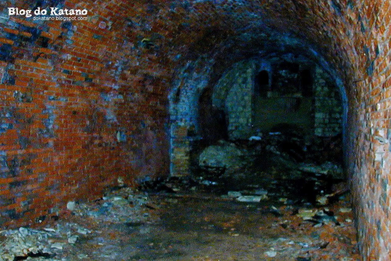No interior a escuridão é total. Sem lanterna, avancei graças ao flash da máquina fotográfica.