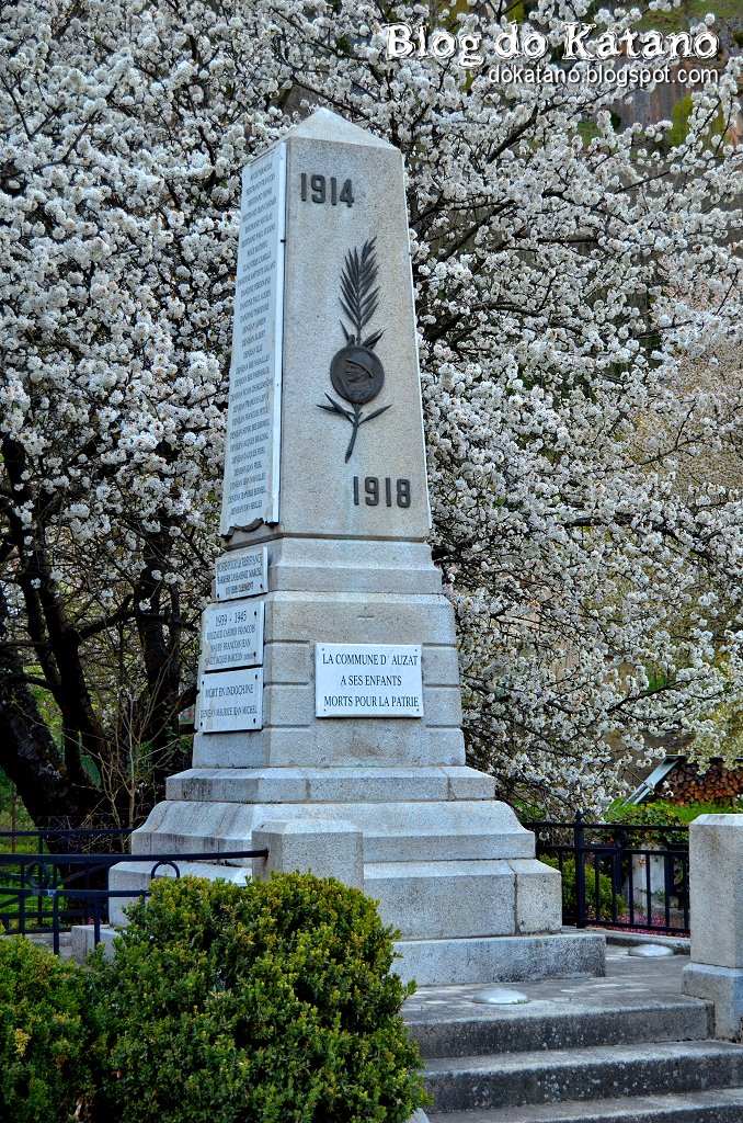 Em Auzat, tal como acontece praticamente em todas (senão mesmo todas) as localidades de França, com maior ou menor monumentalidade, também em Auzat se ergue um monumento que recorda os filhos desta terra que deram a vida pela França na I Guerra Mundial, tendo depois sido acrescentados os nomes dos desaparecidos na II Guerra Mundial e nos conflitos do Magrebe. A quantidade de apelidos idênticos nesta estela (há até um apelido que se repete 12 vezes!) faz-nos pensar no terrível drama que deve ter sido o 1º conflito mundial para as comunidades locais.