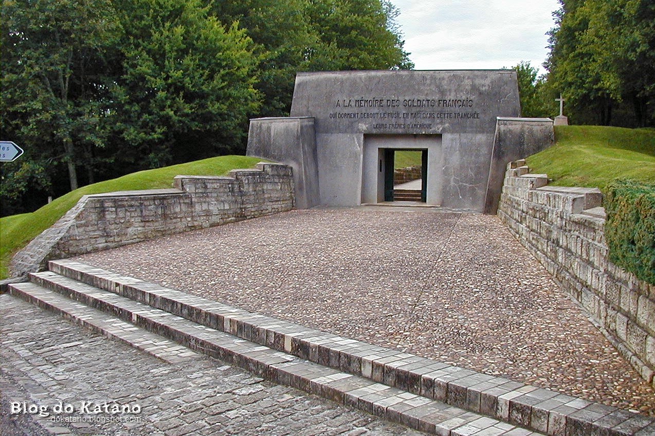 Um panfleto que tinha recolhido num museu ali perto conta a história desta trincheira. Os soldados franceses estavam aqui prontos, com a espingarda na mão, para carregarem sobre os alemães quando um tiro certeiro de artilharia alemã os enterrou vivos, deixando apenas as baionetas expostas como marcas de uma sepultura imprevista.