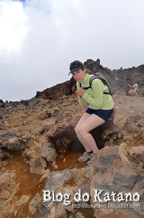 A temperatura é também um choque: 25º na estação de base do teleférico para 9º no topo, com um ventinho assobiante e cortante! Desta vez, contudo, estávamos preparados. Curioso foi também experimentar na pele o facto de o cansaço de esforço ser ligeiramente maior a esta altitude.