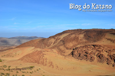 Na segunda vez, optámos por subir pelo teleférico até ao topo do Teide e descer depois pela sua encosta até à Montanha Branca e daí regressando pelo caminho que já conhecíamos. Bom, na verdade não foi bem ao topo uma vez que para cumprir o percurso entre a estação de topo do teleférico, a 3.500m de altitude e o cume do Teide, é necessário solicitar autorização prévia, já que o número de acessos diários permitidos é limitado (há vigilantes no local). Infelizmente, quando tentámos pedir autorização, uma semana antes da nossa ida, já estava tudo reservado para essa semana e para as duas seguintes!