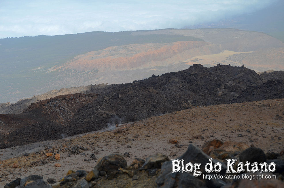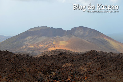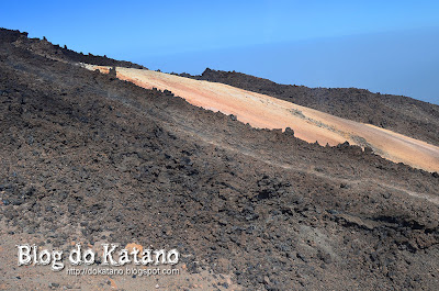Não sei se identificaram mas lá ao fundo avista-se a parede da caldeira. Ao meio avistamos uma antiga escorrência de lava e, em primeiro plano, um grande monte de piroclastos
