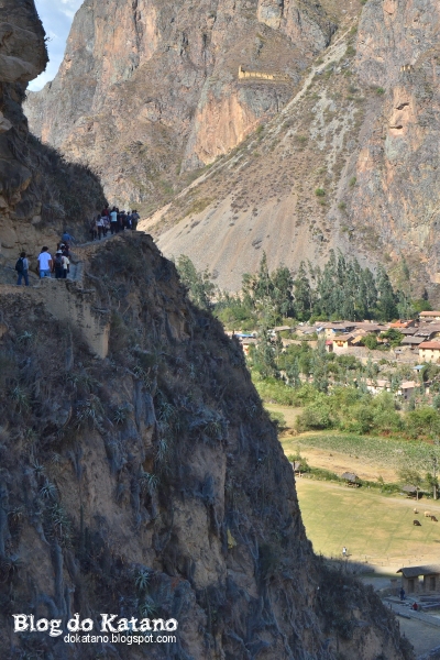 Chegados junto do templo do Sol, pelo trilho que se vê à esquerda e que, pela reduzida largura e visão privilegiada para a zona baixa do vale, chegou a provocar alguma inquietação incómoda na zona baixa abdominal de alguns dos presentes, deslumbrámos-nos com a vista. Do outro lado da povoação, empoleirados na montanha, avistam-se edifícios empoleirados na montanha e um deus que nos olha de volta. Os edifícios que se encontram à direita deste eram armazéns, onde os cereais colhidos nas zonas agrícolas eram armazenados. A localização, sempre em local destacado, não era inocente. Destinava-se a garantir a melhor ventilação possível dos preciosos grãos, para ajudar à sua conservação.