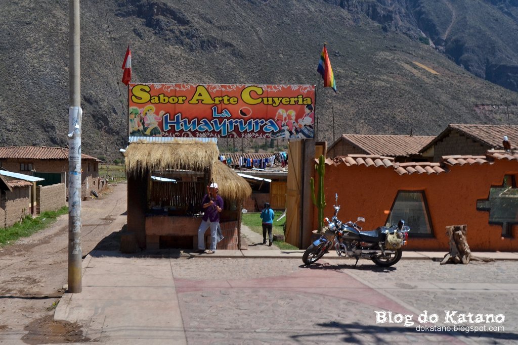No caminho, sobretudo ao passar pela comunidade de Lamay, vêem-se várias "Cuyerias", nada mais nada menos que restaurantes onde se serve um prato nacional peruano: o Cuy, isto é, o porquinho-da-Índia. Embora a ideia de comer um animal de estimação nos pareça estranha, no Peru é um dos pratos mais populares, sendo os Cuy criados como coelhos. O nosso guia, percebendo o espanto perante esta iguaria, perguntou a certa altura se tínhamos algum destes bichos como animal de estimação. Tendo recebido uma resposta afirmativa por parte de uma das senhoras presentes, retorquiu: -"Nesse caso, aconselho-a vivamente a sacrificar e comer o animal. Vai- ver que é delicioso!". A gargalhada geral que se seguiu contrastou com o ar desconcertado da senhora. Este foi um prato do qual nos abstivemos durante toda a nossa estadia no Peru.