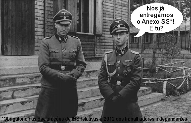 Fiquei hoje a saber pelo Facebook que todos os trabalhadores independentes são obrigados a entregar com a sua declaração de IRS um novo anexo, o anexo SS. Trata-se de um anexo criado pela portaria 103/2013 de 11 de Março (ver aqui) que se destina a incluir na declaração de IRS uma declaração que, até agora, era entregue à própria Segurança Social até ao dia 15 de Fevereiro, destinada a declarar o valor dos rendimentos obtidos no ano anterior. Quem não entregar a declaração de IRS com este anexo SS até ao final do prazo, ou seja, até dia 31 de Maio, terá de pagar uma coima de 50 euros.
