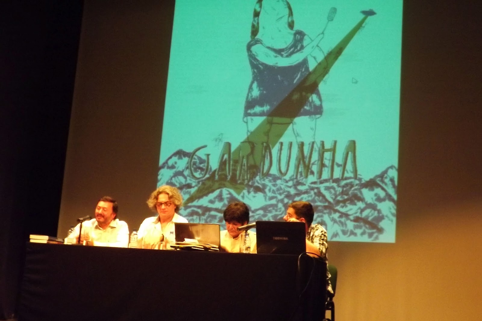 As "hostilidades" começaram no Sábado com um conjunto de palestras sobre "O Paranormal e a envolvência da Gardunha" na qual tive ocasião de participar, após gentil convite da organização, ao lado do historiador Paulo Loução, do historiador Pedro Salvado e do jornalista do Jornal do Fundão, Nuno Francisco, no papel de morador. Pode-se dizer que, depois do que me tem vindo a acontecer de há uns meses a esta parte, me estou a tornar especialista em fenómenos paranormais mas não foi sobre isso que me debrucei. Aproveitando as informações que tenho vindo a recolher desde 2008, partilhei uma série de histórias e lendas da zona da freguesia do Souto da Casa e a coisa pareceu-me ter corrido bem. Aliás, o facto de apenas ter avistado uma pessoa a dormir no final da apresentação é a prova disso!