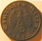 Reverso: Inscrição "Deutsches Reich - 1940", com caracteres góticos apresentando uma águia sobre uma cruz suástica.