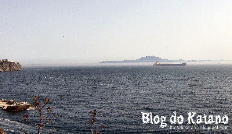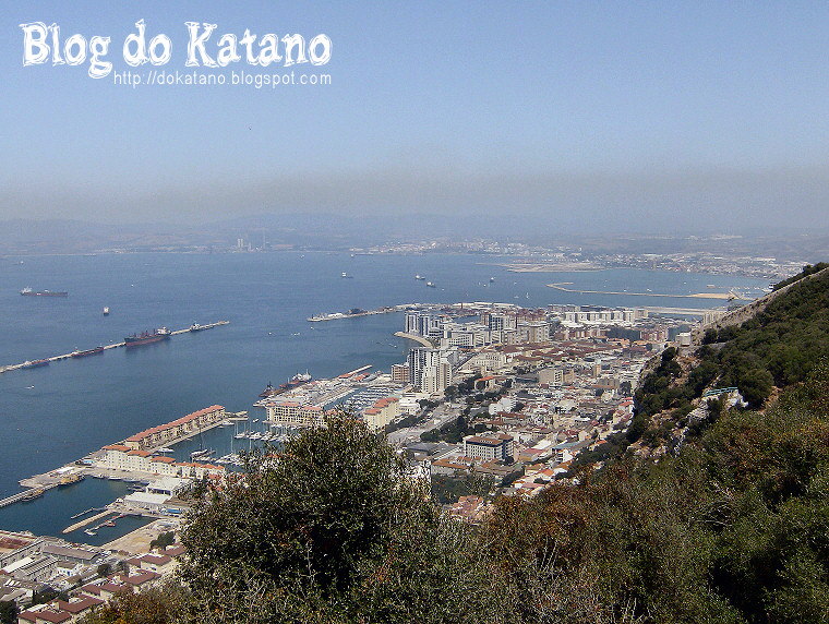 A vertente Oeste de Gibraltar, sendo bem visível o maciço com mais de 400m de altura e, à direita, o farol da Ponta Europa. A vertente Este consiste, ao contrário desta, de uma parede rochosa praticamente vertical que corta a respiração!