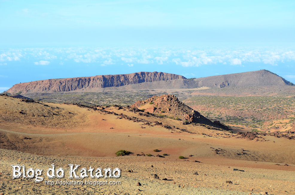 No outro lado do pequeno vale dá para imaginar a lava de elevada viscosidade que deu origem à elevação que se avista. Ao longe vislumbra-se o Observatório Astronómico do Teide.